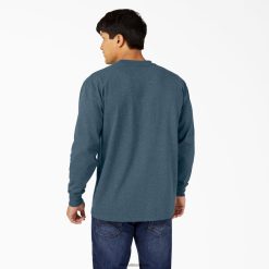 vestuário Dickies camiseta pesada mesclada manga longa azul báltico (botão) homens V2FZ46715
