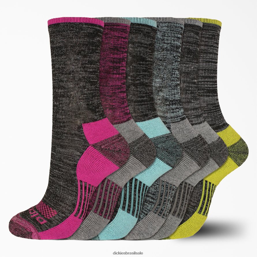 acessórios Dickies Pacote de 6 meias de tripulação de corrida livre de controle de umidade preto (bk) mulheres V2FZ463006