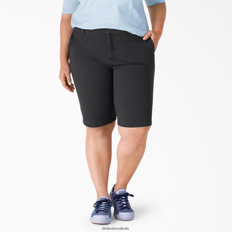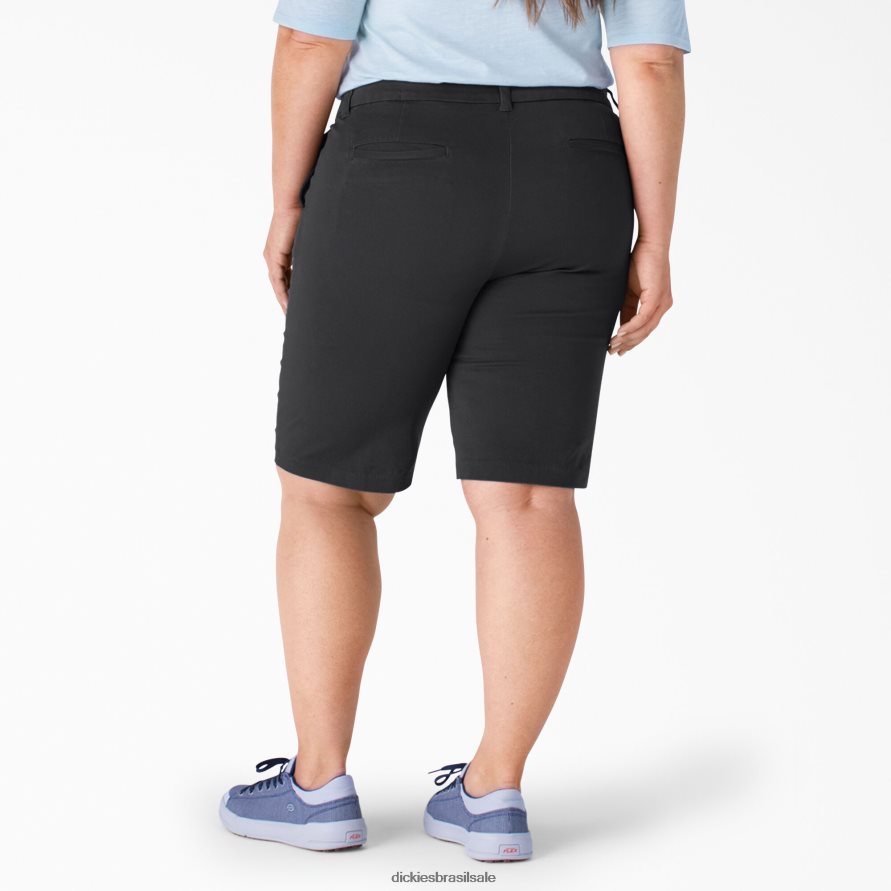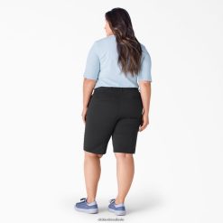 vestuário de trabalho Dickies bermuda de sarja plus shape perfeito 11″ preto lavado (rbkx) mulheres V2FZ462250