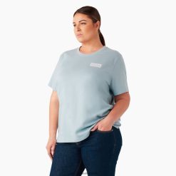 vestuário de trabalho Dickies plus heavyweight workwear t-shirt gráfico doca azul (du1) mulheres V2FZ462189