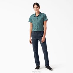 não sacrifique o ajuste perfeito quando se trata de suas calças skinny favoritas. A calça de sarja feminina dickies oferece estilo direto com recursos que melhoram seu conforto e mobilidade dia após dia. a fabricação de sarja levemente elástica permite facilidade de movimento e o cós contornado evita folgas nas costas. sentada logo abaixo da cintura, estas calças skinny são equipadas com um fecho de botão frontal e dois bolsos traseiros embutidos, garantindo facilidade de uso no trabalho ou para um estilo casual do dia a dia.