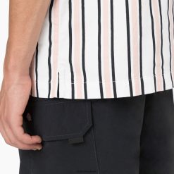 vestuário Dickies camisa de ajuste relaxado de resfriamento de skate listra branca/lótus/preta (wus) homens V2FZ46826