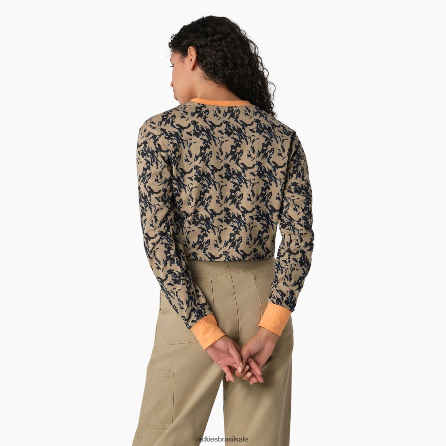 vestuário Dickies camiseta cropped manga longa camuflada camuflagem de glitch de areia do deserto (dhd) mulheres V2FZ462186