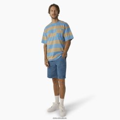 vestuário Dickies camiseta de bolso listrada de ajuste relaxado azul celeste/faixa de areia do deserto (ast) homens V2FZ46742