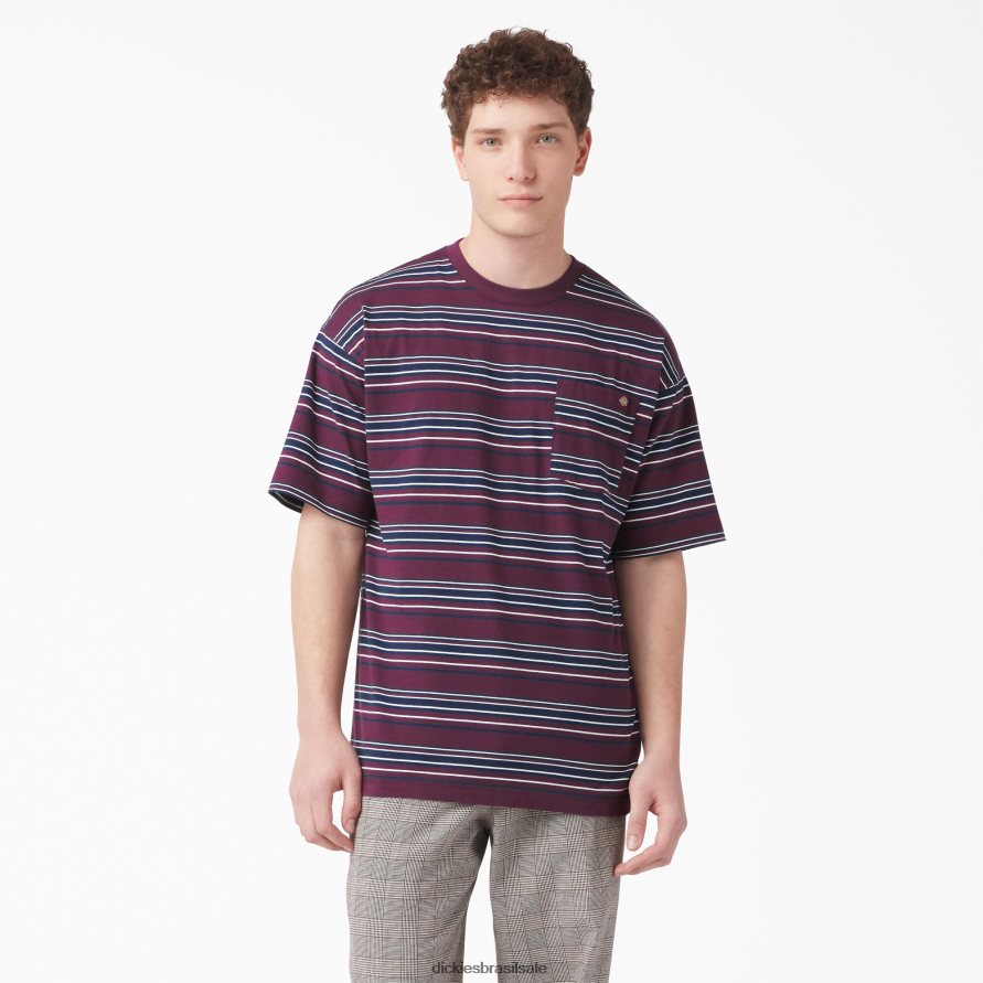 vestuário Dickies camiseta de bolso listrada de ajuste relaxado faixa de vinho de uva (gsw) homens V2FZ46746