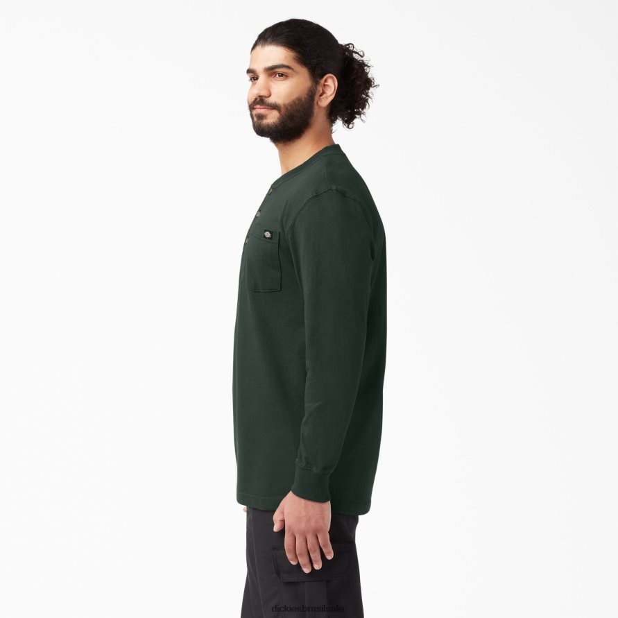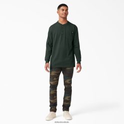 vestuário Dickies camiseta henley manga longa caçador verde (gh) homens V2FZ46697