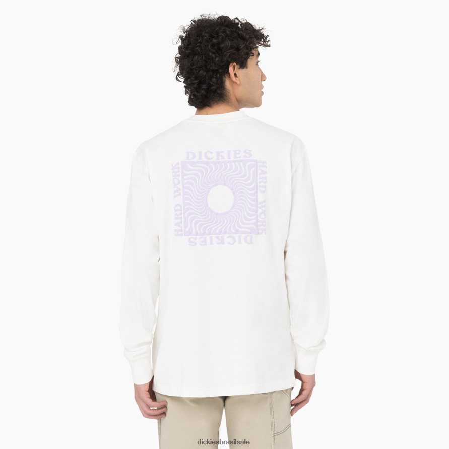 A camiseta masculina Oatfield é uma silhueta clássica de gola redonda feita de uma confortável fabricação de jérsei. a camiseta de manga comprida tem nosso logotipo “dickies hard work” no peito e gráfico quadrado de explosão de sol nas costas.