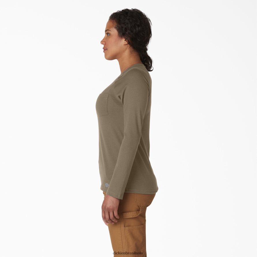 vestuário Dickies camiseta manga longa refrescante urze verde militar (mld) mulheres V2FZ461637
