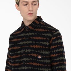 a camisa falkville é uma execução ousada de um estilo clássico dickies. tratamos nosso autêntico botão de manga comprida com ajuste relaxado com nosso ousado padrão geométrico do sudoeste. confeccionada em flanela 100% algodão com dois bolsos frontais no peito e barra reta. uma camisa clássica inspirada no trabalho feita para os ousados.