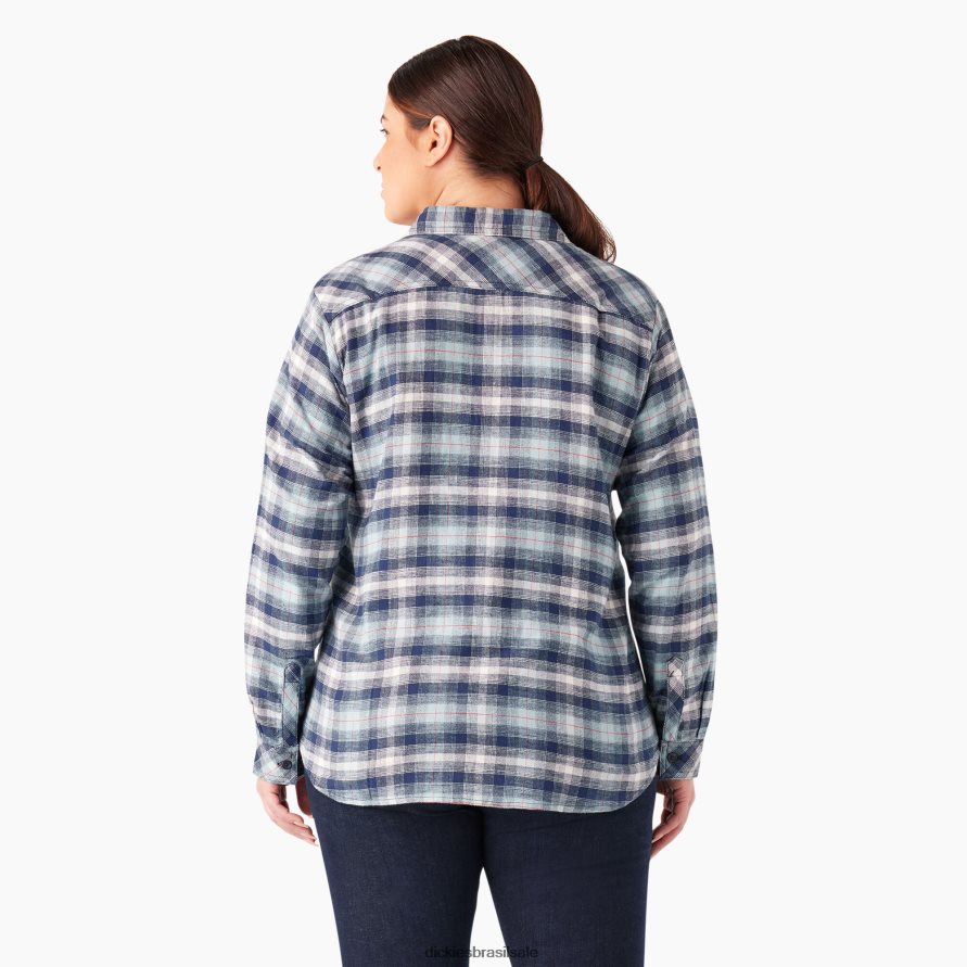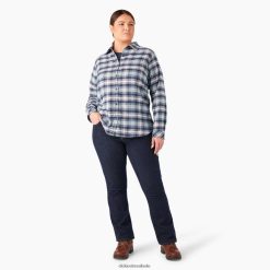 vestuário Dickies mais camisa de flanela xadrez de manga longa xadrez ombre azul claro/marinho (c1f) mulheres V2FZ462208