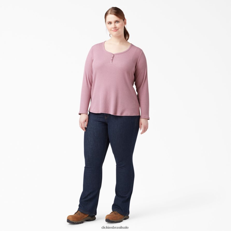 vestuário Dickies mais camisa de manga longa henley orquídea empoeirada (kdd) mulheres V2FZ462205