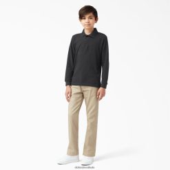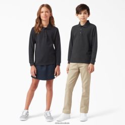vestuário Dickies polo de manga longa em piquê preto (kbk) crianças V2FZ462697