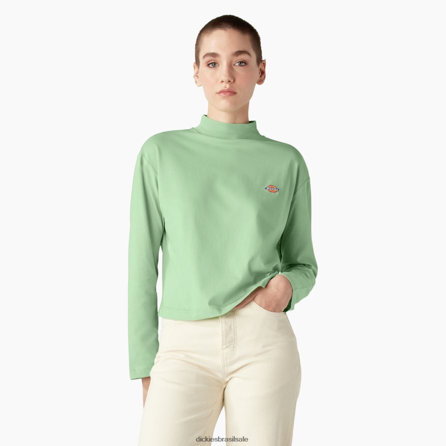 vestuário Dickies t-shirt manga longa mapleton gola alta verde tranquilo (qg2) mulheres V2FZ461986