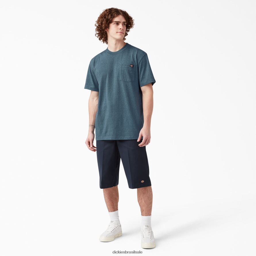 vestuário Dickies t-shirt mesclada pesada de manga curta azul báltico (botão) homens V2FZ46525