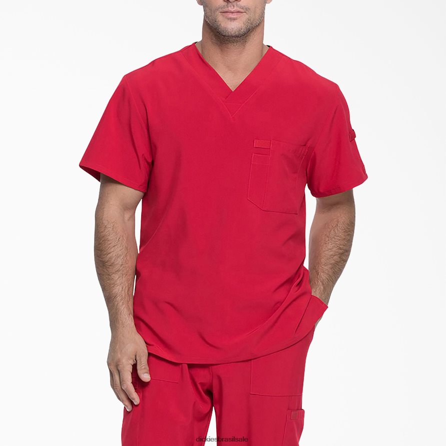 A blusa masculina com decote em V da Dickies manterá você no topo do seu jogo. Apresentando uma mistura de poliéster com uma alta porcentagem de elastano, esta blusa permite que você se mova durante o turno naturalmente. a fita de sarja para reforço, bolso no peito e compartimento para caneta mantém você organizado e seu uniforme durável o suficiente para qualquer trabalho. importado.