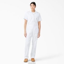 vestuário de trabalho Dickies macacão de manga curta refrescante branco (o que) mulheres V2FZ461548