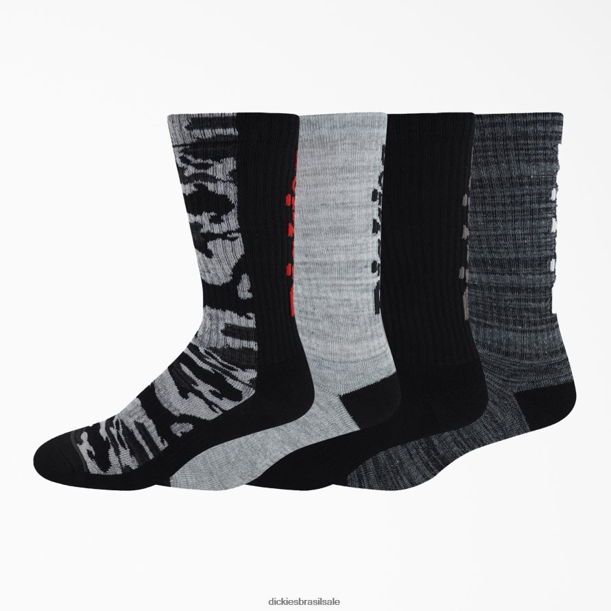acessórios Dickies Meias de camuflagem com logotipo da tripulação 4-pack preto cinza marmorizado (bgm) unissex V2FZ462921