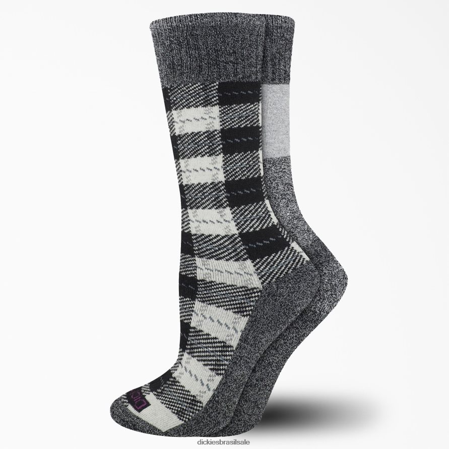acessórios Dickies pacote de 2 meias xadrez térmicas xadrez branco (wtl) mulheres V2FZ463009