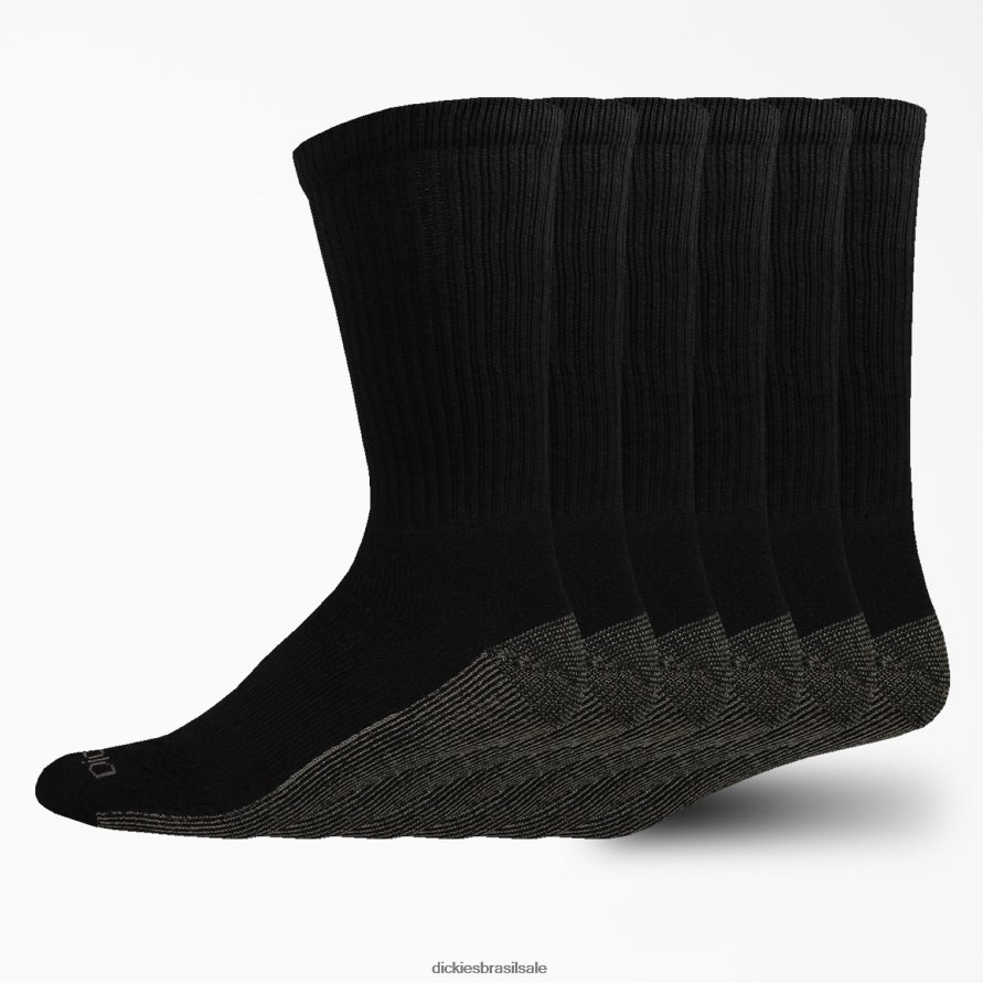 acessórios Dickies pacote de 6 meias de tripulação de controle de umidade preto (bk) unissex V2FZ461429