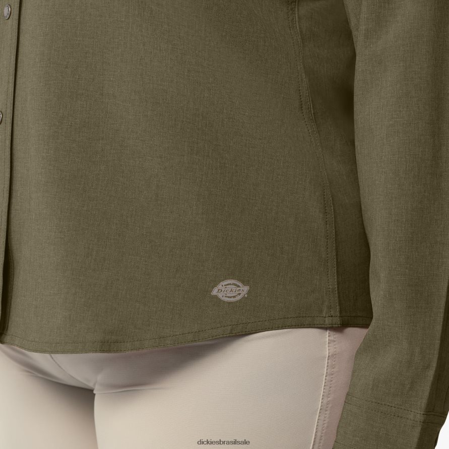 vestuário de trabalho Dickies além de camisa de trabalho com aba de rolo de resfriamento urze verde militar (mld) mulheres V2FZ461686