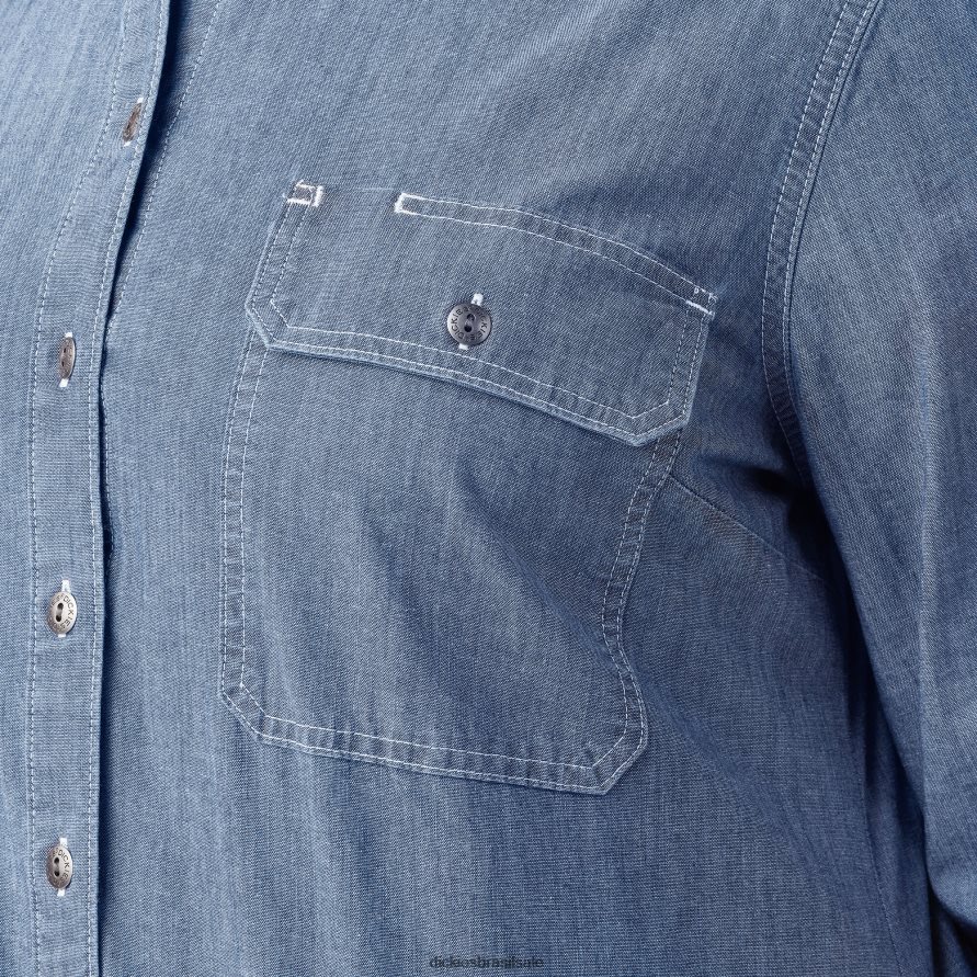 vestuário de trabalho Dickies além de camisa de trabalho de cambraia de manga comprida azul claro stonewashed (lsw) mulheres V2FZ462125