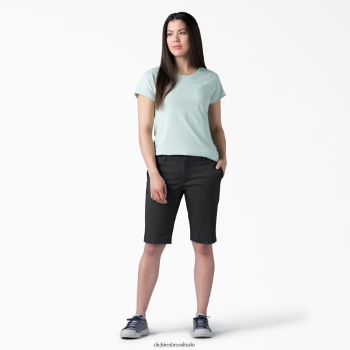 vestuário de trabalho Dickies bermuda forma perfeita 11″ preto lavado (rbkx) mulheres V2FZ462233