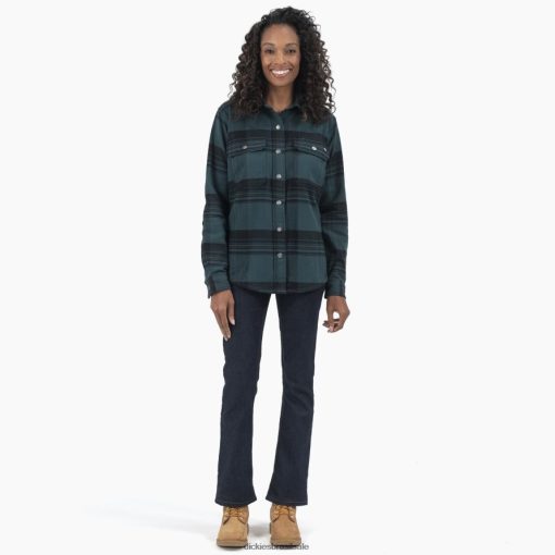 vestuário de trabalho Dickies camisa de flanela duratech renegade floresta/xadrez preto (b1g) mulheres V2FZ461999