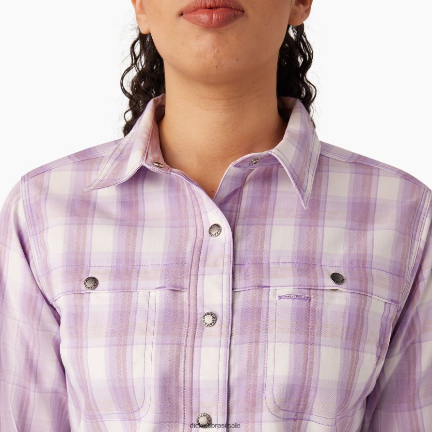 vestuário de trabalho Dickies camisa de trabalho com aba de resfriamento xadrez de encosta rosa roxo (a2d) mulheres V2FZ461672