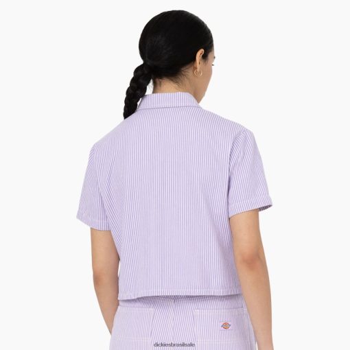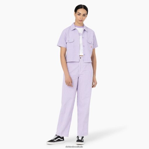 vestuário de trabalho Dickies camisa de trabalho cortada com listras hickory cru/lilás (eug) mulheres V2FZ462023