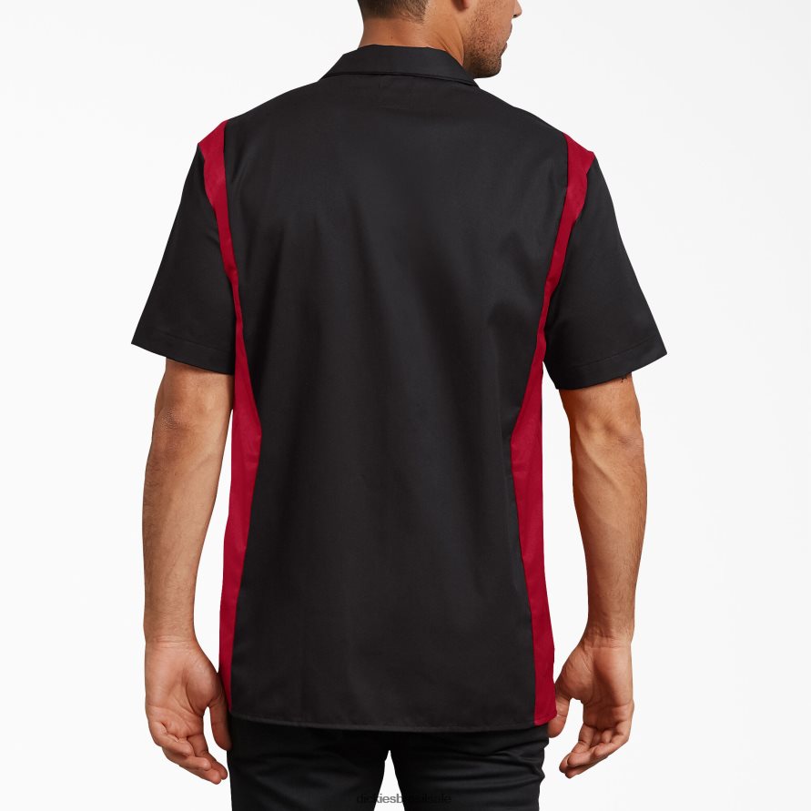 vestuário de trabalho Dickies camisa de trabalho de manga curta bicolor tom vermelho preto (bker) homens V2FZ46658