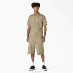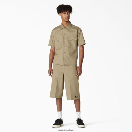 vestuário de trabalho Dickies camisa de trabalho de manga curta caqui (kh) homens V2FZ46495