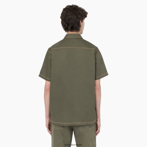 vestuário de trabalho Dickies camisa de trabalho de manga curta madras verde militar/ponto pepita (mgn) homens V2FZ46761