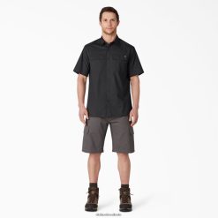 vestuário de trabalho Dickies camisa de trabalho ripstop de manga curta preto lavado (rbk) homens V2FZ46644