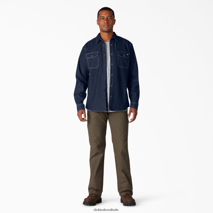 vestuário de trabalho Dickies camisa manga longa jeans flex lavagem jeans escura (dw2) homens V2FZ46727