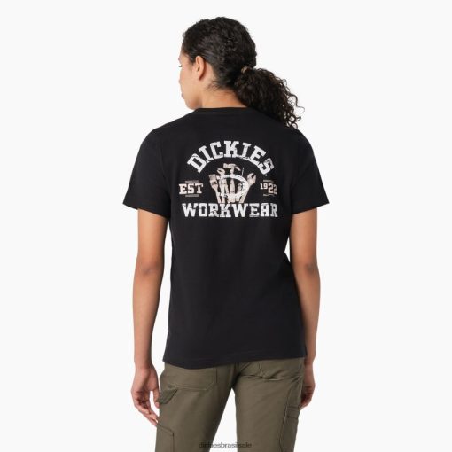 vestuário de trabalho Dickies camiseta estampada para trabalho pesado preto (kbk) mulheres V2FZ462117