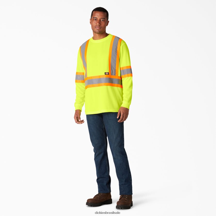 vestuário de trabalho Dickies camiseta manga longa hi vis safety ansi amarelo (ay) unissex V2FZ461449