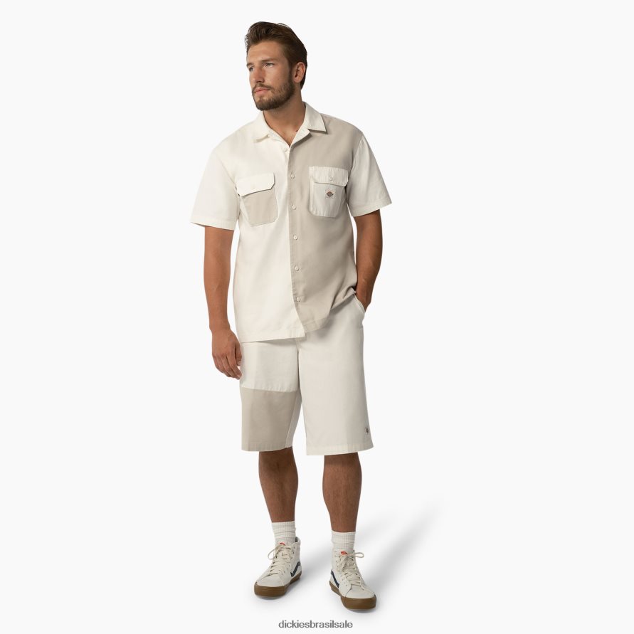 a camisa eddyville é uma execução tonal de um estilo utilitário clássico dickies. a camisa de trabalho de botão é feita de peças duráveis em blocos de cores com detalhes de patch tonal. é construído para funcionar com dois bolsos frontais no peito e finalizado com nossa icônica etiqueta dickies tecida.