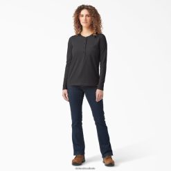vestuário de trabalho Dickies henley peso pesado preto (kbk) mulheres V2FZ462198