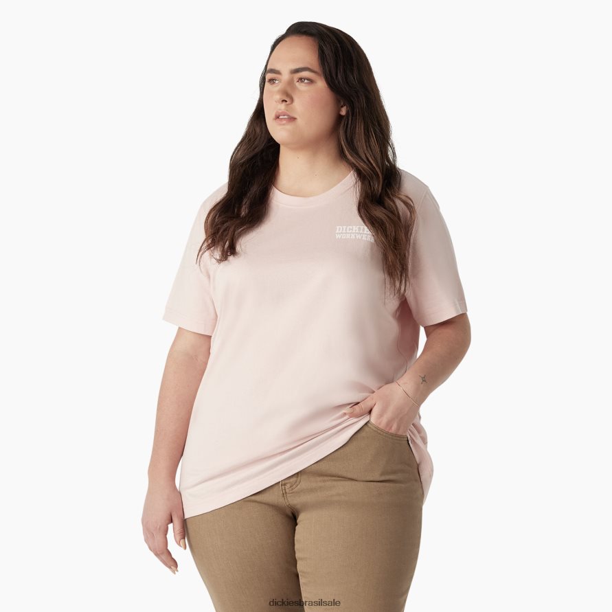 vestuário de trabalho Dickies plus heavyweight workwear t-shirt gráfico lótus rosa (lo2) mulheres V2FZ462191
