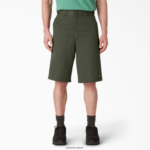 vestuário de trabalho Dickies shorts de trabalho com frente plana e folgada 13″ verde oliva (og) homens V2FZ46347