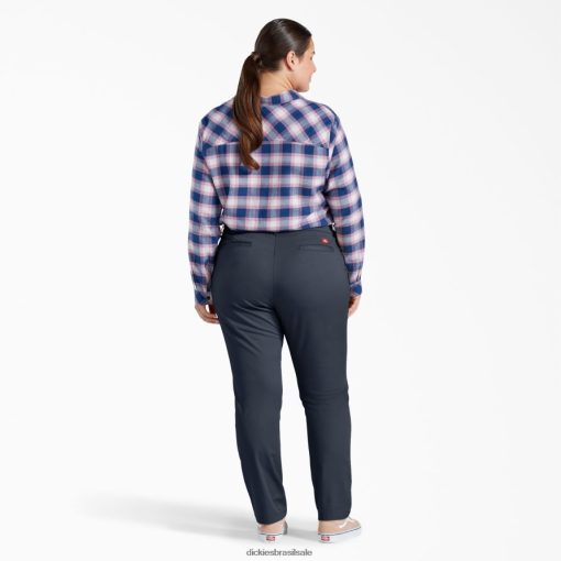 esteja você trabalhando ou não, torne-o um dia confortável com as calças femininas dickies plus slim fit. com um design de cintura média e ajuste skinny, essas calças têm uma perna skinny para que caibam perfeitamente. estas calças são projetadas com um tecido de sarja elástico para que você possa se mover da maneira que precisar. a entretela elástica exclusiva no cós contornado evita folgas nas costas, mantendo a aparência e o conforto equilibrados.