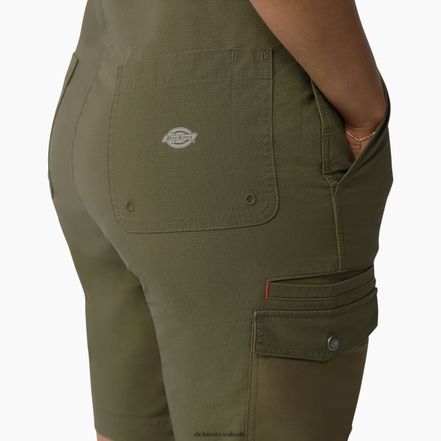 vestuário Dickies além de macacão ripstop refrescante verde militar lavado (rml) mulheres V2FZ461670