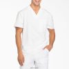 faça parte de um profissional médico com a blusa masculina dynamix com decote em V da Dickies. projetado com decote em V e gola de malha, é confortável em todos os turnos. o elástico, o bolso no peito com meio debrum, o bolso na manga com fecho de zíper e os painéis traseiros fornecem movimento e funcionalidade.