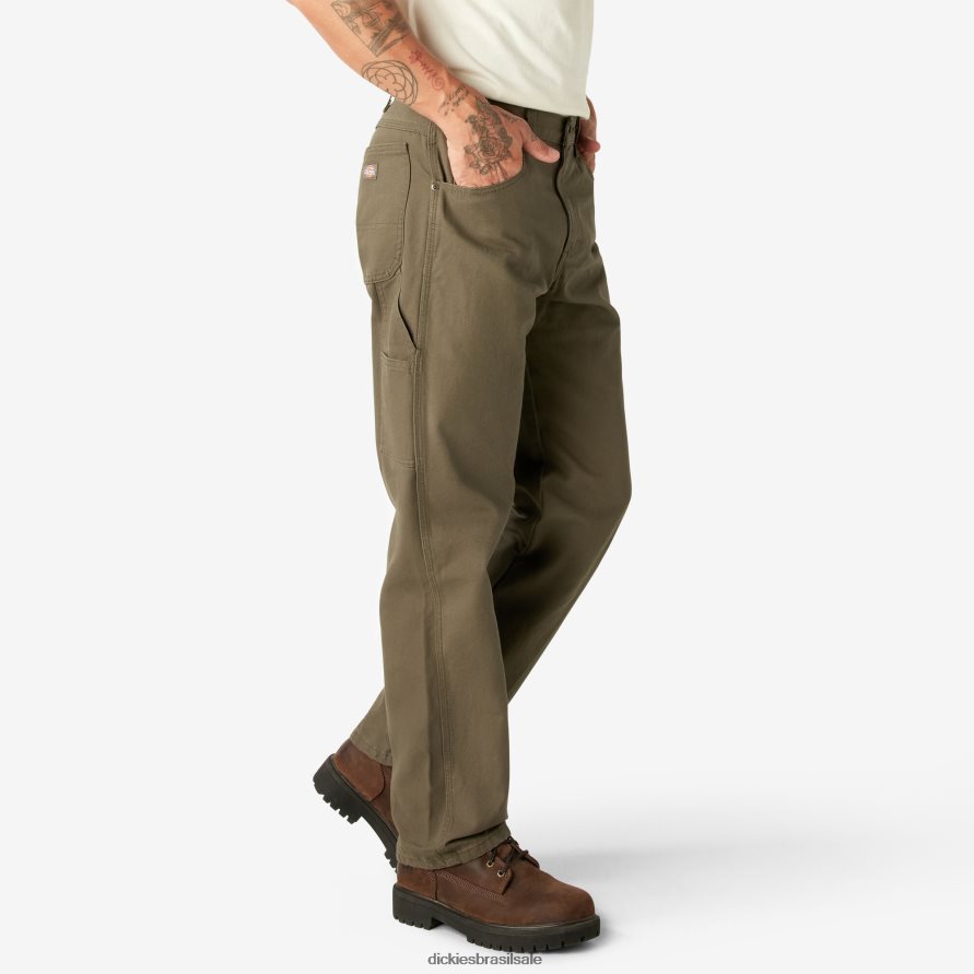 vestuário Dickies calças de carpinteiro pesadas de ajuste relaxado verde musgo lavado (rms) homens V2FZ4689