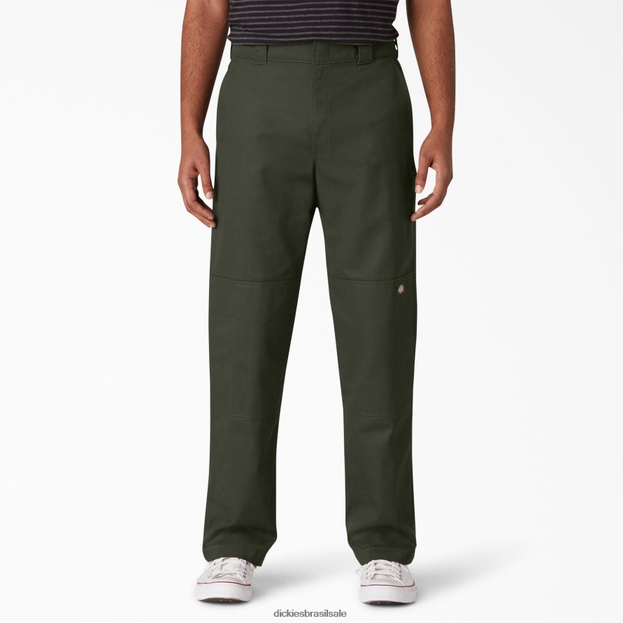 vestuário Dickies calças de joelho duplo frente plana verde oliva (og) homens V2FZ46309