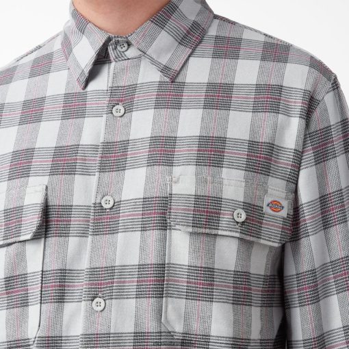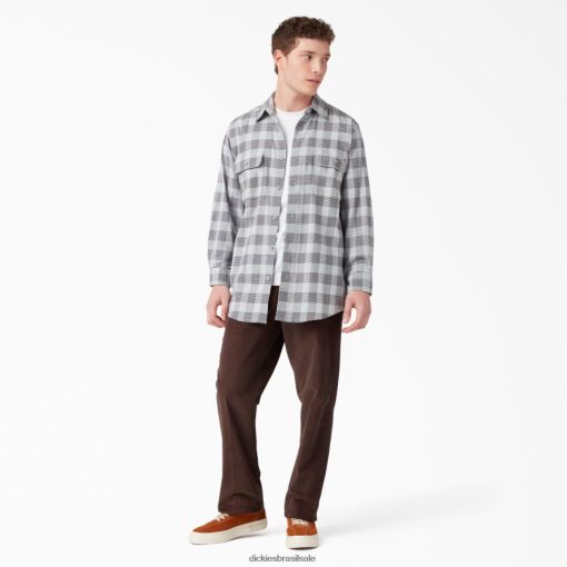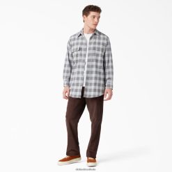 vestuário Dickies camisa flanela manga longa xadrez cinza final (upr) homens V2FZ46782