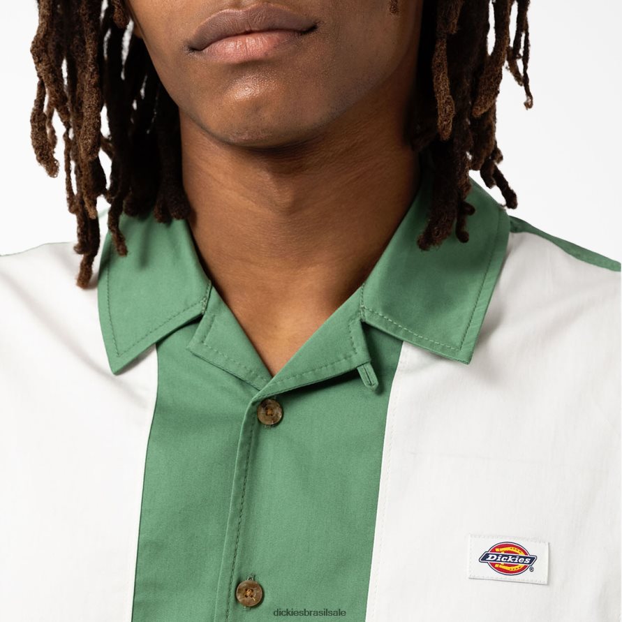 a camisa Westover é uma autêntica camisa de botão de ajuste regular. uma elegante camisa de manga comprida superdimensionada com detalhes contrastantes no painel frontal, gola revere em forma de V e dois bolsos frontais com aplicação de etiqueta icônica dickies. uma camisa clássica inspirada no time do colégio feita para uso moderno.