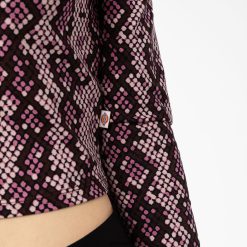 A camiseta feminina camden cropped de manga comprida é uma peça feminina moderna com um ajuste fino, disponível em padrão de pele de cobra digital cáqui ou rosa com nosso icônico script dickies em branco na frente. feito de uma mistura de algodão elástico. uma camiseta de inverno elegante que manterá você aquecido e com boa aparência.