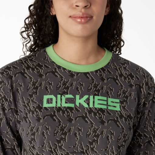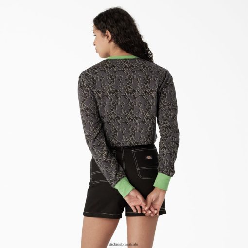 vestuário Dickies camiseta cropped manga longa camuflada camuflagem de falha de carvão (htc) mulheres V2FZ462187