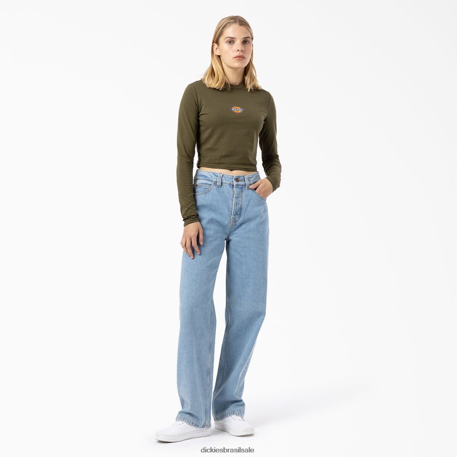 vestuário Dickies camiseta cropped manga longa com logo maple valley verde militar (ml) mulheres V2FZ462053